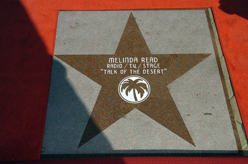 Melinda was honored by receiving her Star on the Palm Springs "Walk of Stars", Saturday, April 30th, 2005 at 2:00 PM . This was to celebrate her 250th episode of Talk of the Desert! Her Star is located at 144 S. Palm Canyon Drive, between Charlie Farrell's and Art Laboe's Star. This was a "sweet" Star unveiling - Right in front of See's Candies! This was the perfect place to put Melinda's Star - she's had Type 1 Diabetes since she was three years old. So a diabetic's Star in front of See' Candies - Perfect!