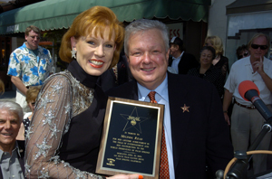 The President of the Palm Springs Walk of Stars, Bob Alexander, reads and presents